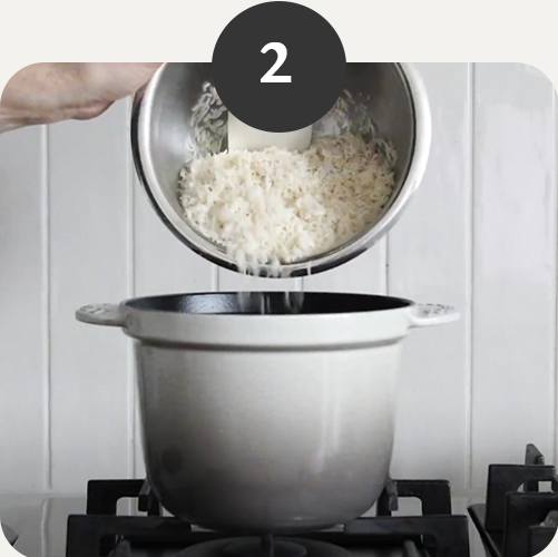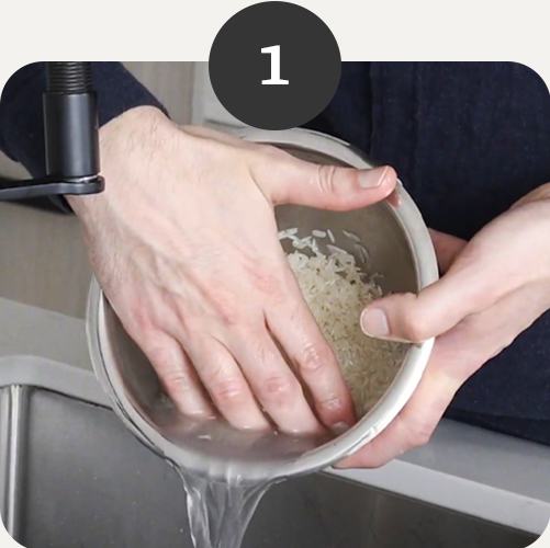 Volg de stappen hieronder om te zien hoe eenvoudig het is om elke keer weer dikke, gelijkmatig gegaarde rijst te maken.